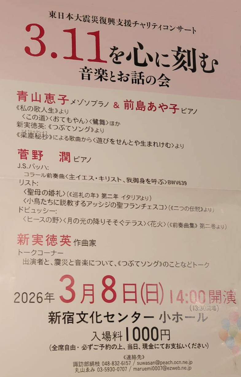 2026年3月8日(日)14:00 新宿文化センター小ホール