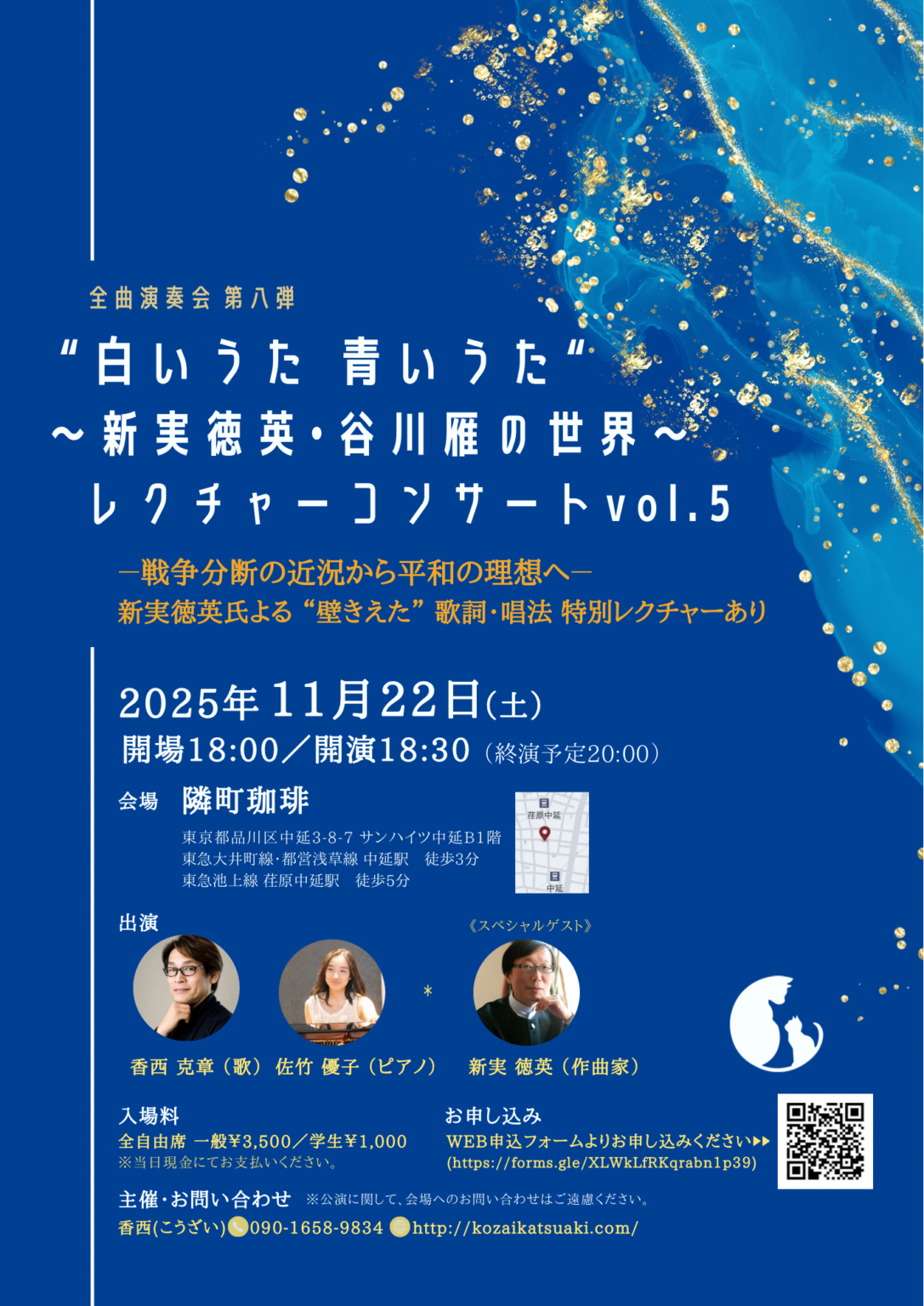 ①22日中延の隣町珈琲にて香西克章(歌)vs佐竹優子(ピアノ)のレクチャー・コンサートに出演。