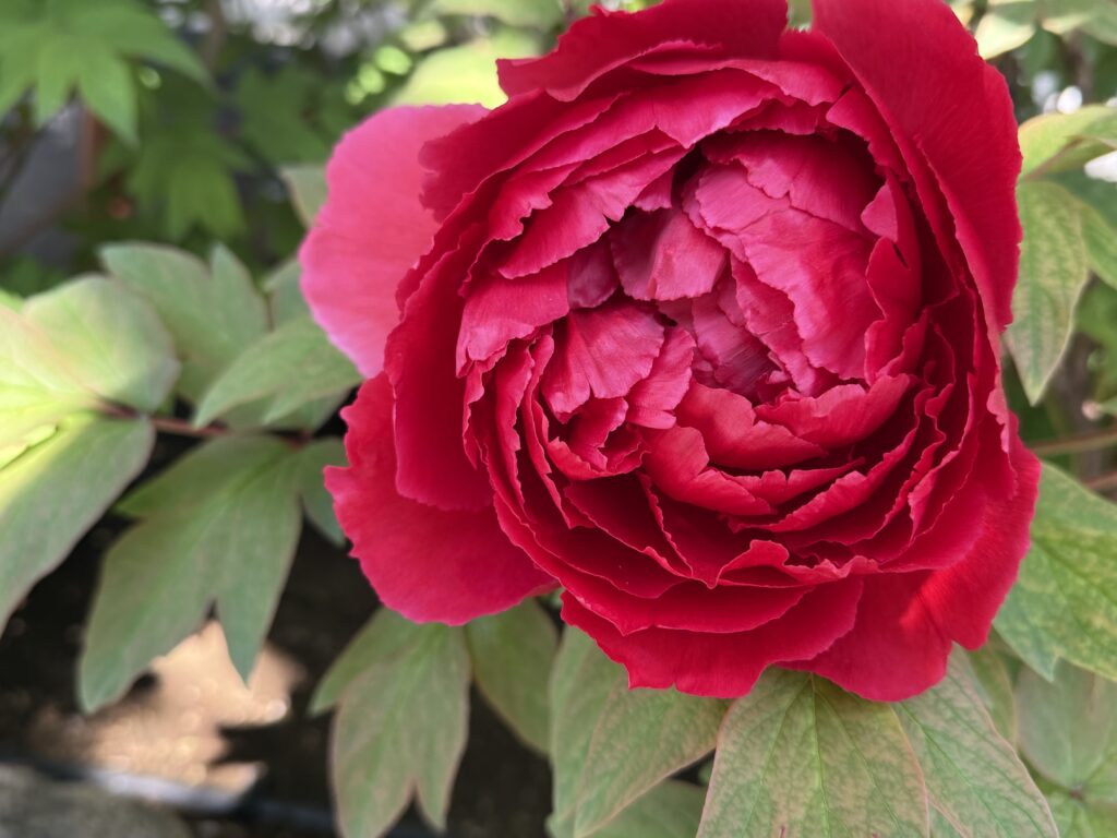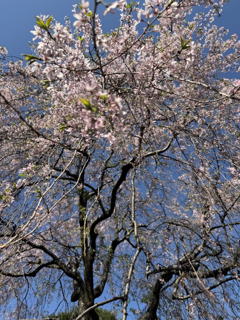 咲き誇る枝垂れに牡丹